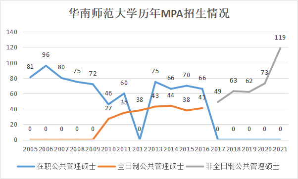 在招生情況方面,自2005年我校開辦公共管理碩士(MPA)項(xiàng)目以來,辦學(xué)質(zhì)量不斷提升,招生人數(shù)也呈現(xiàn)逐年上升的趨勢。其中 2017年以后,尤其是近三年以來,我校非全日制公共管理碩士招生數(shù)量顯著提升,其中2019年招錄了62人,2020年招錄了73人,2021年招錄了119人。