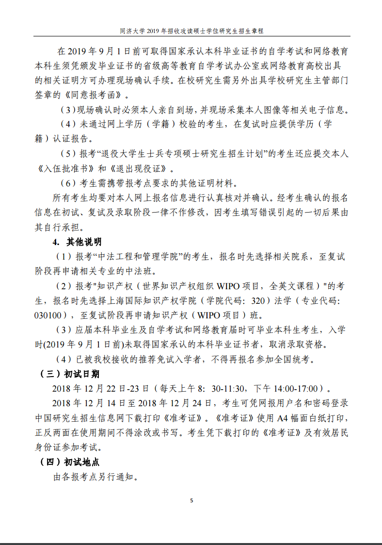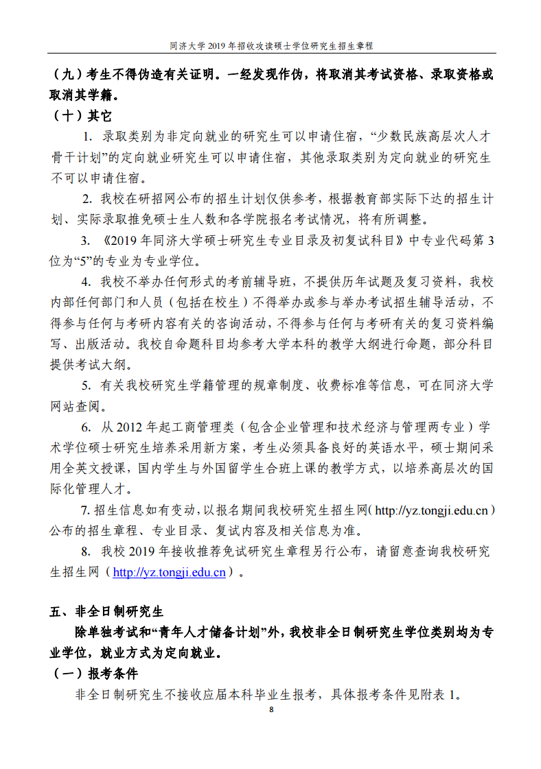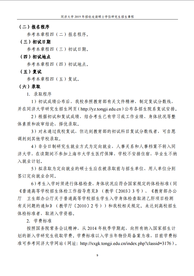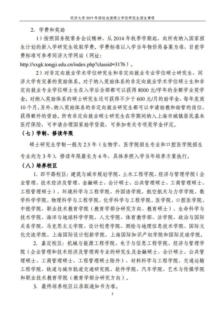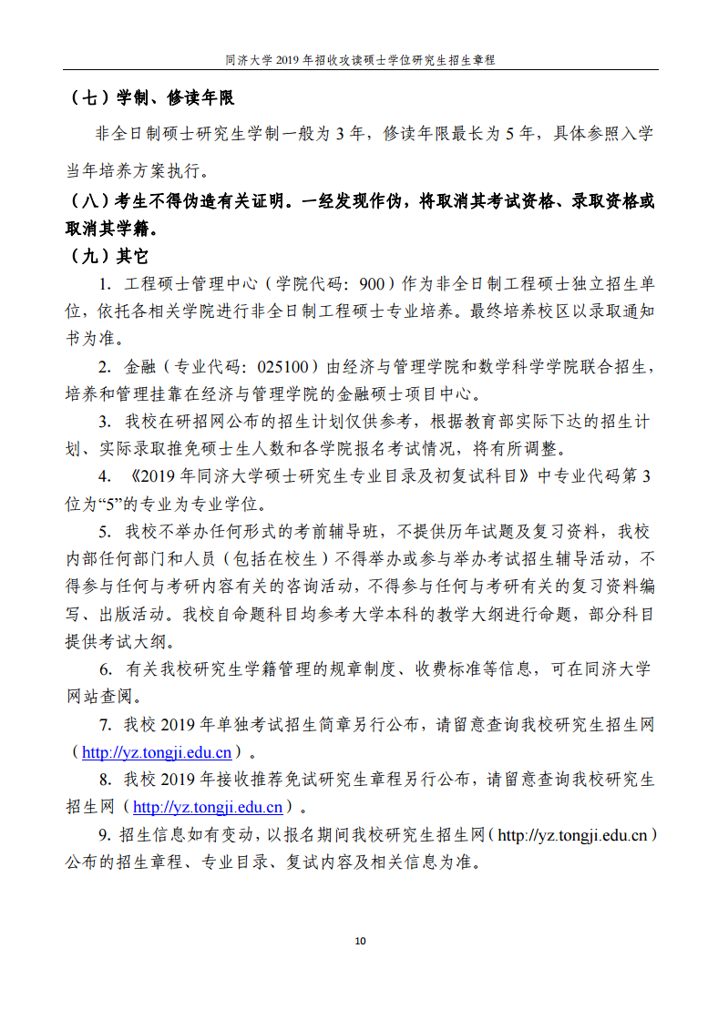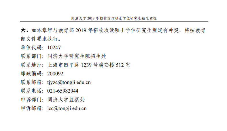 同濟大學2019年招收攻讀碩士學位研究生招生章程