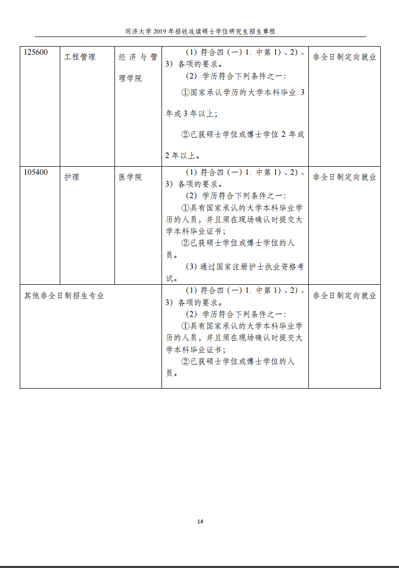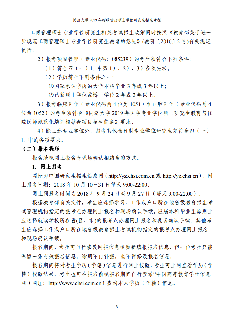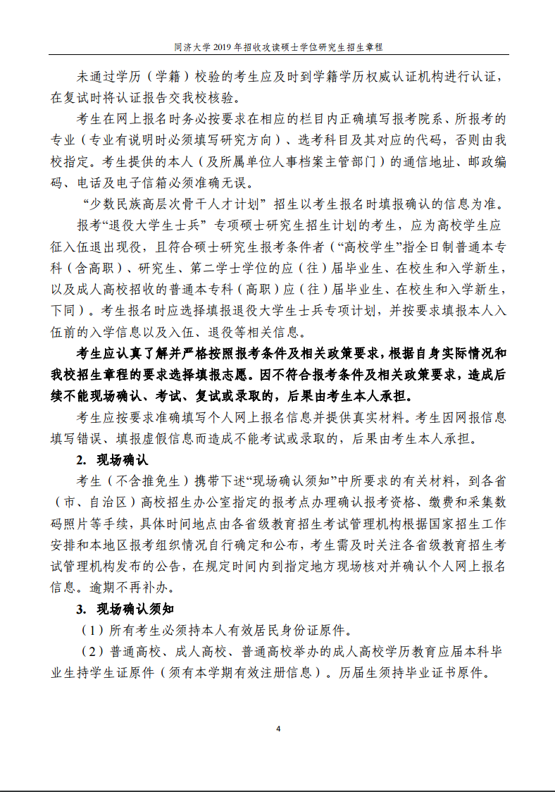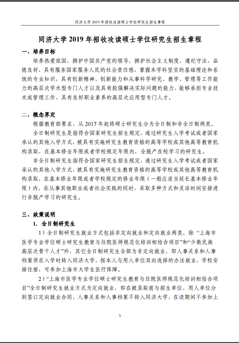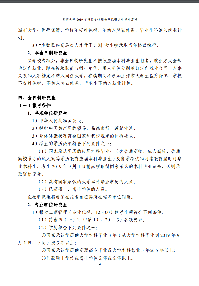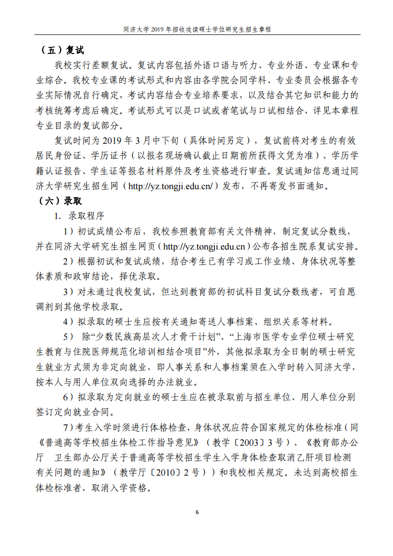 同濟大學2019年招收攻讀碩士學位研究生招生章程