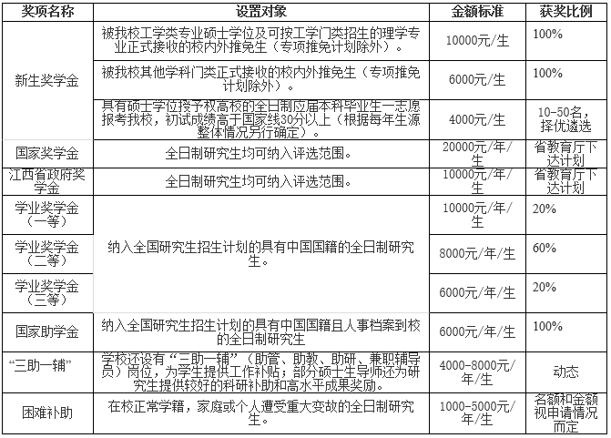 學校1985年開始培養碩士研究生,1990年獲碩士學位授予權,2010年獲得推薦優秀應屆本科畢業生免試攻讀碩士研究生資格,目前在校研究生規模3300余人。學校擁有環境科學與工程、航空宇航科學與技術和儀器科學與技術等3個江西省一流學科和精確成形與連接技術、構建質量檢測與控制、測試計量技術及儀器、光電子與激光技術、軍用關鍵材料等5個國防特色學科;具有馬克思主義理論(0305)、外國語言文學(0502)、數學(0701)、化學(0703)、機械工程(0802)、光學工程(0803)、儀器科學與技術(0804)、材料科學與工程(0805)、信息與通信工程(0810)、控制科學與工程(0811)、計算機科學與技術(0812)、土木工程(0814)、航空宇航科學與技術(0825)、環境科學與工程(0830)、軟件工程(0835)、管理科學與工程(1201)、設計學(1305)等17個一級學科碩士學位授權點和電子信息、機械、材料與化工、資源與環境、能源動力、土木水利、交通運輸、工程管理、翻譯碩士、藝術碩士、公共管理碩士等11個碩士專業學位授權點。材料科學學科、工程學學科、化學學科進入ESI全球排名前1%,步入國際高水平學科行列。