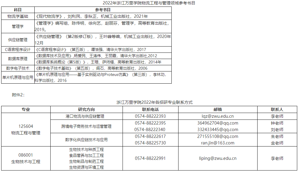 附件2: 浙江萬里學(xué)院2022年各招研專業(yè)聯(lián)系方式