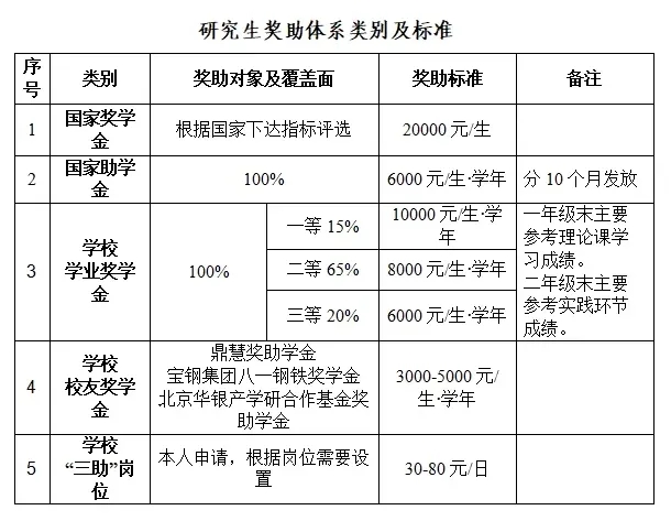 研究生獎(jiǎng)助的類別、標(biāo)準(zhǔn)及覆蓋面見下表: