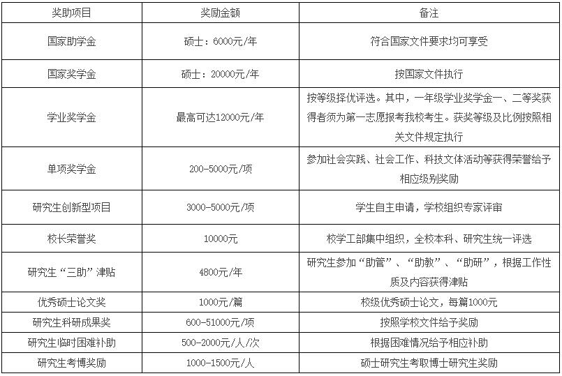 注:表中各類獎助學金僅面向全日制脫產方式學習的非定向碩士研究生評選,評選細則以學校相關文件及通知為準。