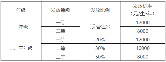 注:(1)面向全日制非定向研究生(有固定工資收入的除外)。(2)一志愿考生、推免生獲一等獎學金,其他調劑志愿考生獲二等獎學金。(3)如若學校研究生學業獎學金實施辦法有最新修訂,則參照最新修訂辦法執行。