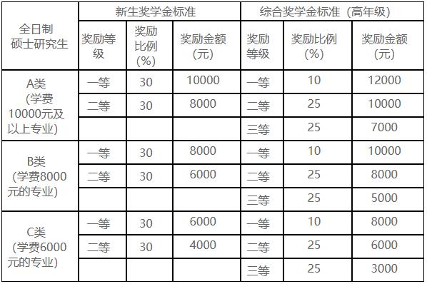 學(xué)校以“獎(jiǎng)勵(lì)優(yōu)良學(xué)生,提高教育質(zhì)量,補(bǔ)助基本生活,提高整體待遇,優(yōu)化結(jié)構(gòu)機(jī)制,促進(jìn)科學(xué)發(fā)展”為目的,建立長效、多元的研究生獎(jiǎng)助體系,適用于納入全國研究生招生計(jì)劃、無固定收入且檔案轉(zhuǎn)入學(xué)校的全日制研究生(除MBA)。學(xué)校研究生獎(jiǎng)助學(xué)金體系由獎(jiǎng)學(xué)金系列和助學(xué)金系列組成,獎(jiǎng)學(xué)金系列分為國家獎(jiǎng)學(xué)金、學(xué)業(yè)獎(jiǎng)學(xué)金(覆蓋面為60%)和學(xué)校獎(jiǎng)學(xué)金,助學(xué)金系列分為國家助學(xué)金、國家助學(xué)貸款和學(xué)校助學(xué)金(助管津貼、助研津貼、臨時(shí)特困補(bǔ)助)。優(yōu)秀研究生還可申請(qǐng)研究生優(yōu)秀學(xué)位論文獎(jiǎng)、優(yōu)秀研究生畢業(yè)生、研究生拔尖創(chuàng)新人才質(zhì)量提升獎(jiǎng)勵(lì)、國家公派獎(jiǎng)學(xué)金項(xiàng)目和研究生科研創(chuàng)新基金項(xiàng)目,資助體系具體信息可登陸學(xué)校研究生院網(wǎng)站查詢。各類獎(jiǎng)助學(xué)金每年可能會(huì)做適當(dāng)調(diào)整,以入學(xué)年份制定的獎(jiǎng)助政策為準(zhǔn),請(qǐng)關(guān)注研究生院網(wǎng)站獎(jiǎng)助體系相關(guān)文件。全日制碩士研究生新生獎(jiǎng)學(xué)金和綜合獎(jiǎng)學(xué)金標(biāo)準(zhǔn)如下表: