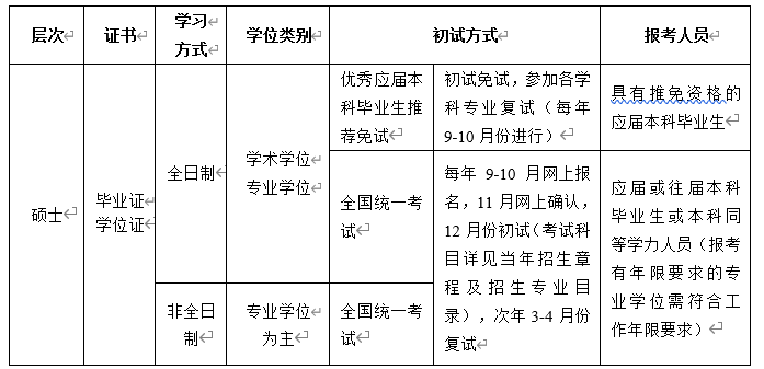 全國(guó)碩士研究生招生考試初試方式分為全國(guó)統(tǒng)一考試和推薦免試。