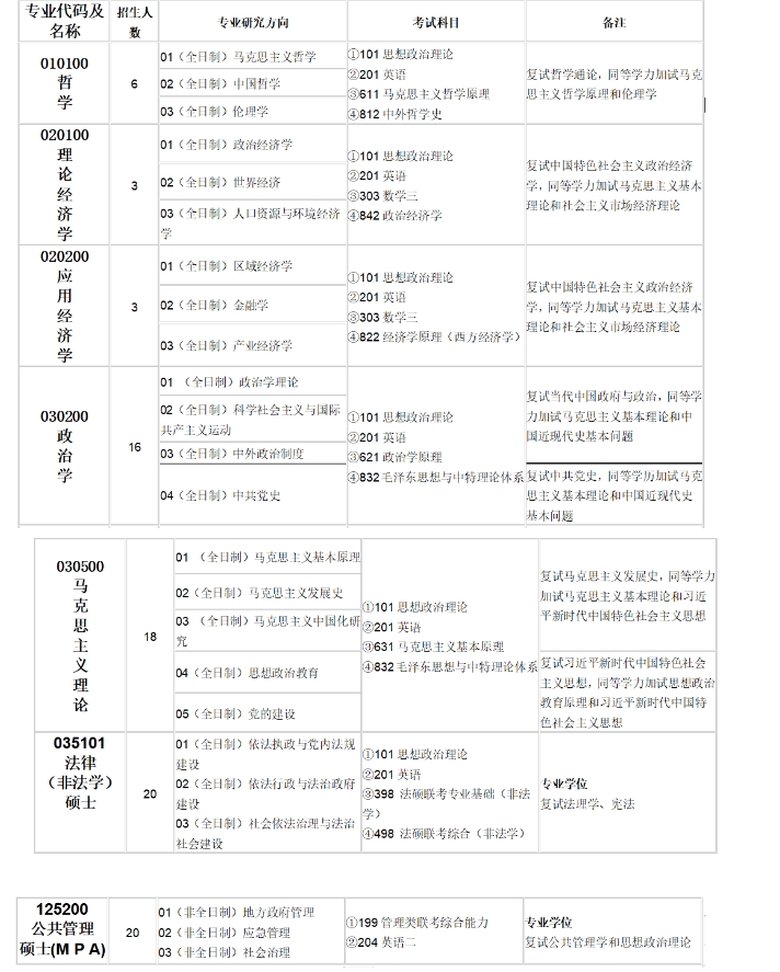 2024年中共四川省委黨校碩士生招生專業(yè)目錄