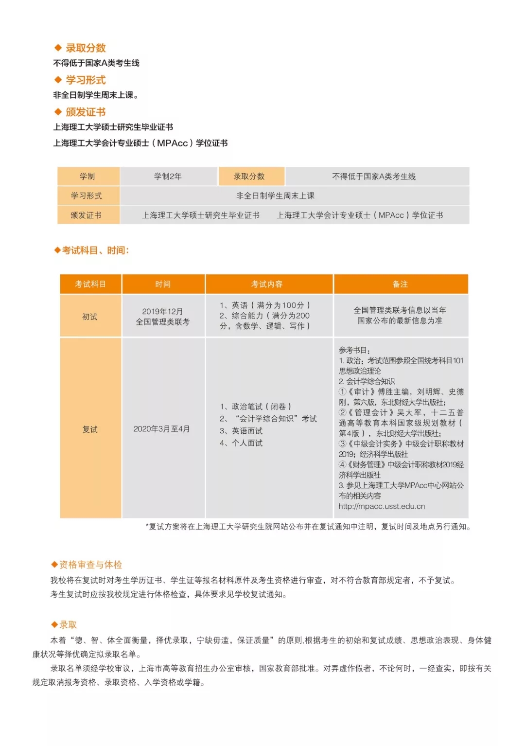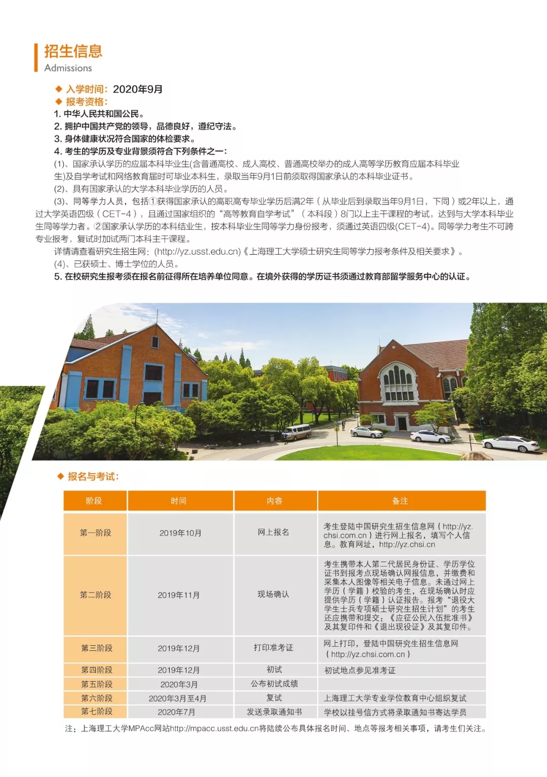 以上就是“上海理工大學會計專碩(MPAcc)2020年招生簡章”的全部內容!更多2020年招生簡章內容,盡在“招生簡章”欄目!