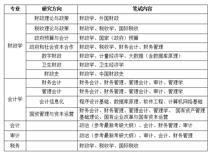 2.方式:筆試考試科目除全國統考外,其他科目由財科院命題,每科考試時間為3小時,詳細考試科目及相關要求等請見《初試目錄》《準考證》。