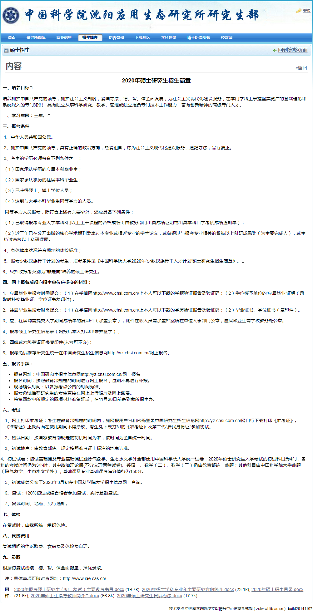 以上就是“中國科學院沈陽應用生態研究所2020年碩士研究生招生簡章”的全部內容!祝你考研成功!