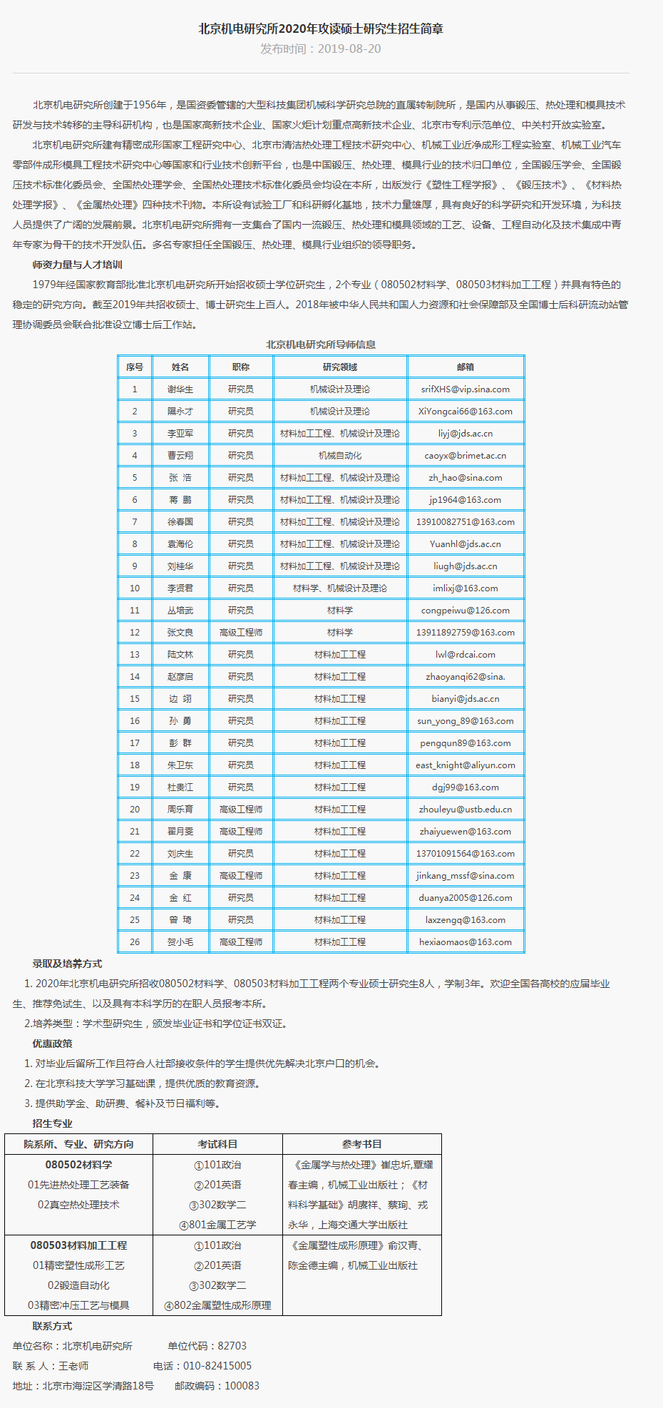 以上就是“北京機電研究所2020年碩士研究生招生簡章”的全部內容!祝你考研成功!