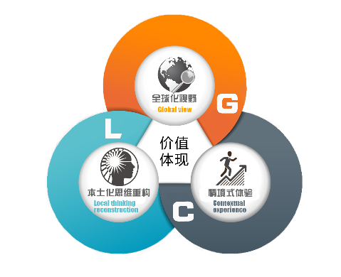 提出構建G L C體系,為學生搭建了一個具有全球化視野 (Global View)、本土化的思維重構(Local Thinking Reconstruction)、情境式體驗(Contextual Experience)的培養體系。