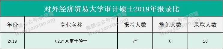 由于對外經濟貿易大學從2019年開始招生,所以研線網整理了對外經濟貿易大學審計碩士2019年報錄比,供大家參考。