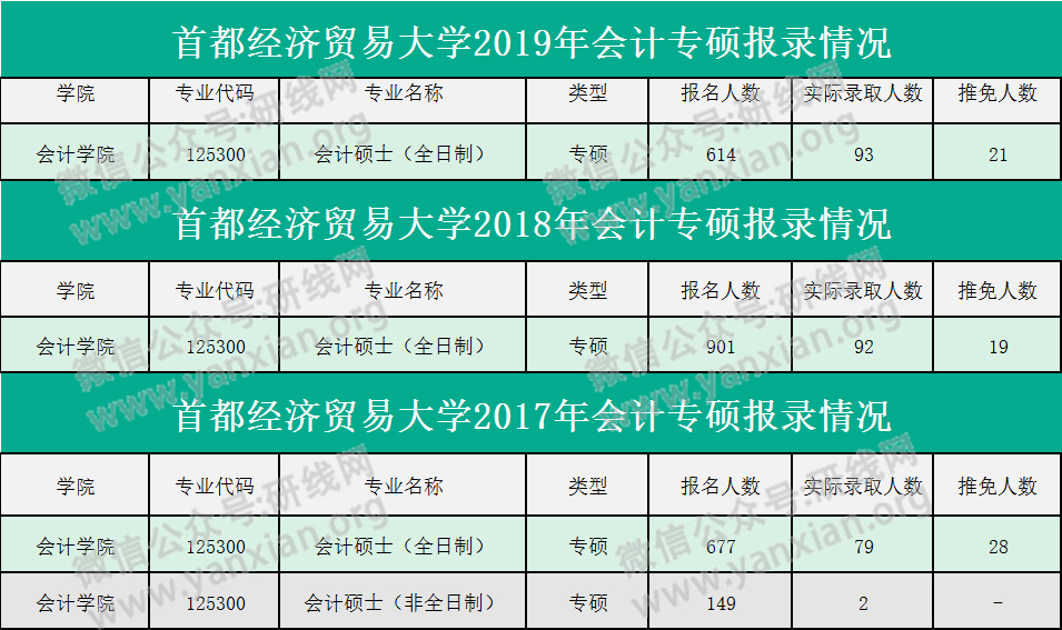 研線網(wǎng)整理首都經(jīng)濟(jì)貿(mào)易大學(xué)會(huì)計(jì)專碩近三年報(bào)錄情況