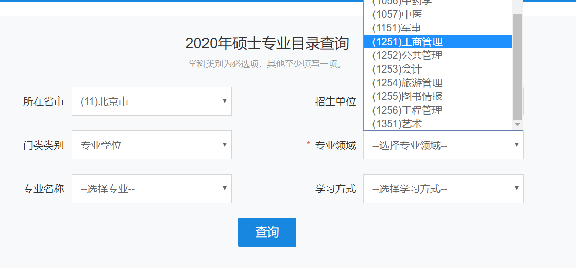 小編夢想去北京,于是打開研招網進入【碩士目錄】