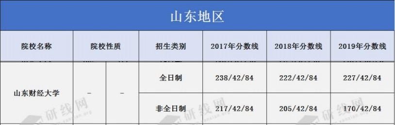 雖然2020年的復試分數線和報錄比還未定,但是研線網整理了山東財經大學會計專碩近三年的復試分數線,供大家參考。