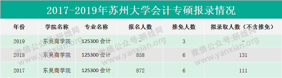 2017年蘇州大學會計專碩報名人數872人,推免人數6人,最終錄取人數(不含推免)111人。