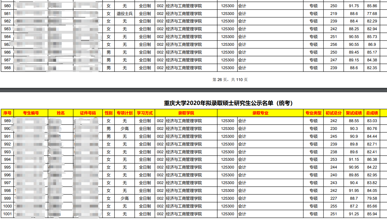 具體重慶大學(xué)2020年MPAcc碩士研究生擬錄取名單,請(qǐng)查看下方