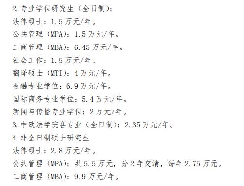 2020年中國政法大學非全日制法律碩士(非法學)學制3年,學費2.8萬元/年;
