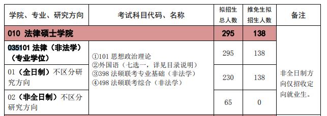 2.報考法律碩士(法學)專業學位的考生,之前在高校學習的專業須為法學專業(僅普通高等學校本科專業目錄法學門類中的法學類專業[代碼 為 0301]畢業生、專科層次法學類畢業生和自學考試形式的法學類畢業生等 可以報考)。