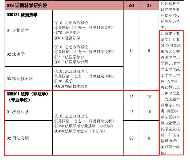 法侓碩士(非法學)證據科學研究院復試分數線:60/90/355