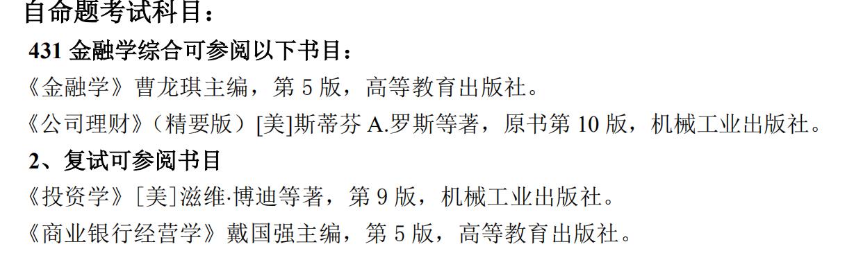 初試科目:政治思想理論+英語二+數學三+金融學綜合