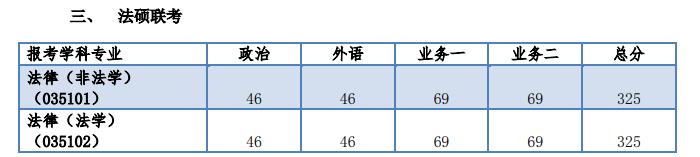 法碩(非法學):錄取52人,后調入77人。最高分389分,最低分325分,平均分357分