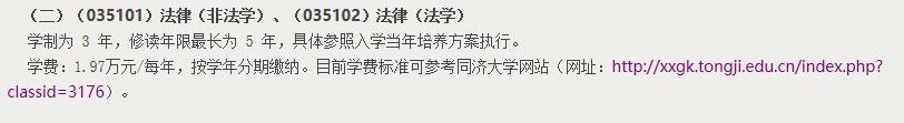 2020年同濟大學非全日制法律碩士(非法學)學制3年,學費1.97萬元/年。