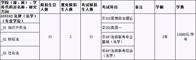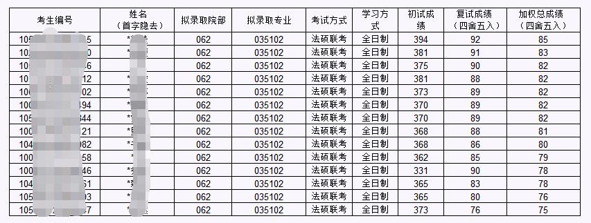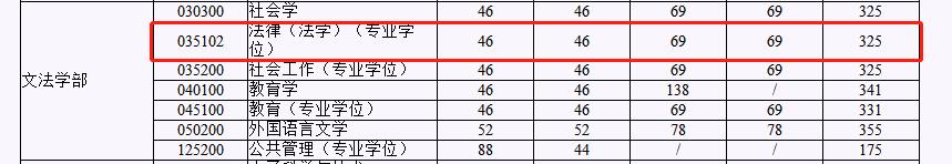 法碩(法學):全日制錄取15人,最高分 394 分,最低分331分,平均分363分。