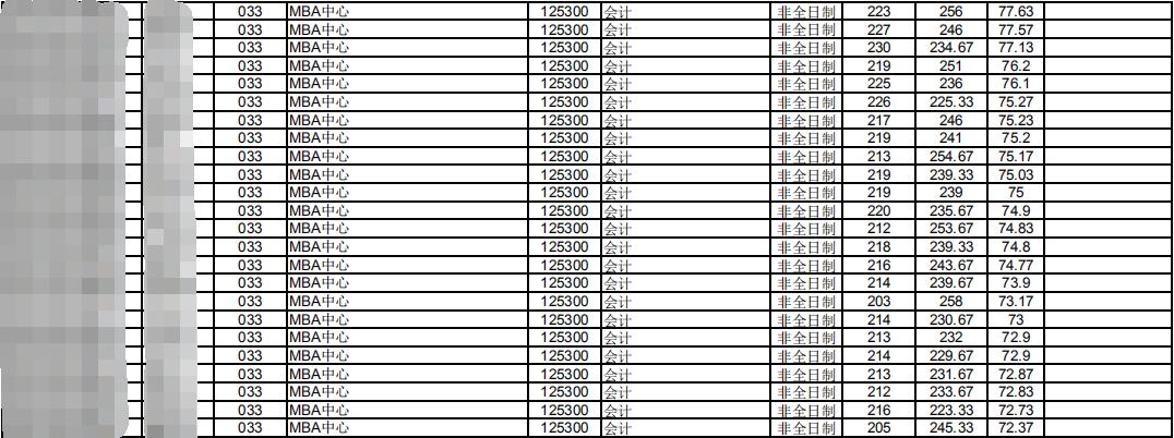 2020年非全日制復試分數線175/88/44(2020年全日制會計碩士未招生)