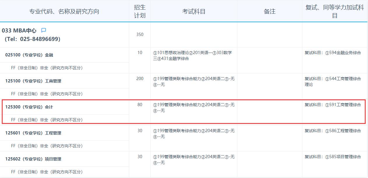 南京航空航天大學2021年會計碩士研究生招生專業目錄