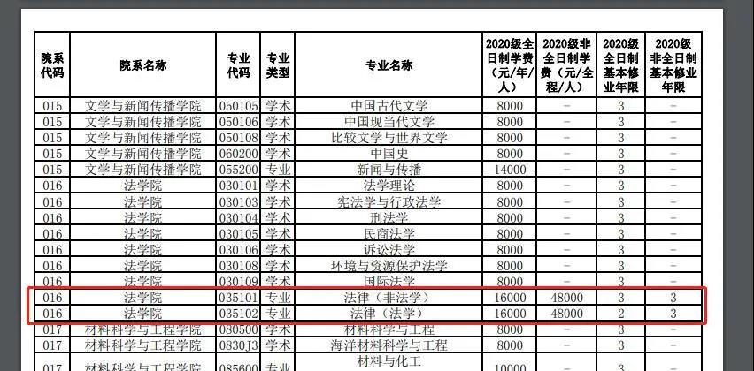 2020年中國海洋大學全日制法律碩士(非法學)學制3年,非全日制3年,學費全程48000元。