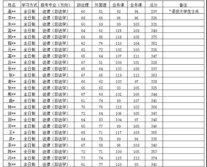 最高分 375 分;最終普通計劃錄取 68 人,2 士兵 1 少干全部錄取;非全日制進入復試一志愿 5 人,最終錄取 5 人。