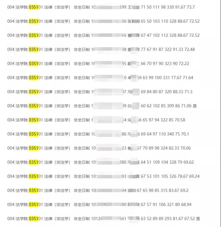 法碩(非法學):全日制錄取163人,其中包含4名少干計劃,3名士兵計劃,1名三扶一支計劃。非全日制錄取31人。