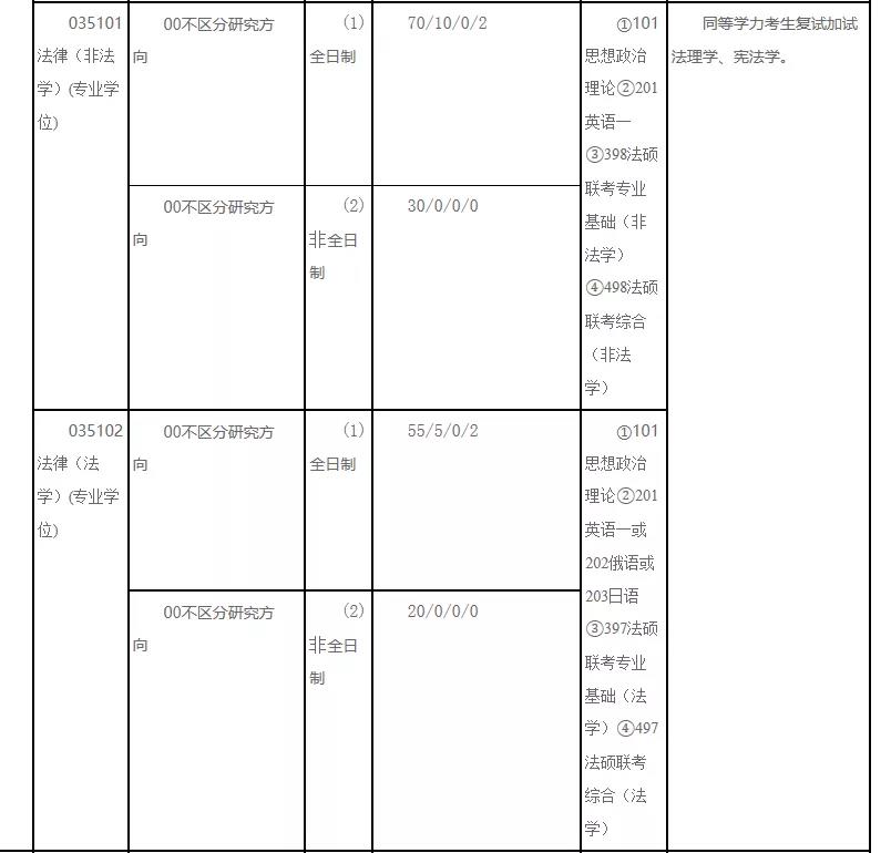 法碩(法學):全日制錄取58人,其中包含1名少干計劃,1士兵計劃。非全日制錄取19人。