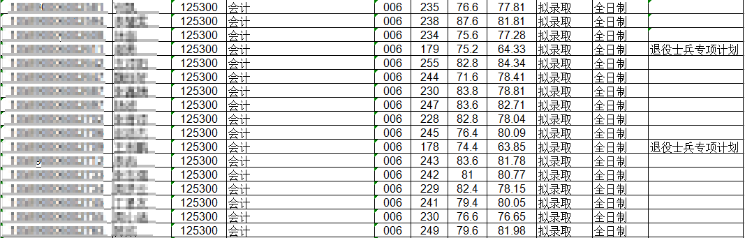 2020年會計專碩非全日制擬錄取情況如下: