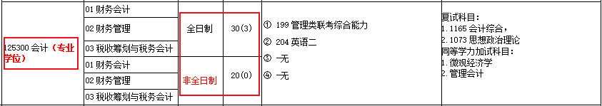 2020年會計專碩全日制擬錄取情況如下: