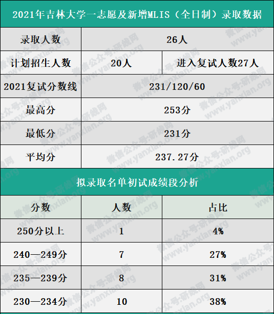 吉林大學(xué)管理學(xué)院2021年全日制圖書(shū)情報(bào)碩士計(jì)劃招生人數(shù)20人,擬錄取碩士研究生(一志愿及新增)26人(不包含士兵計(jì)劃)。