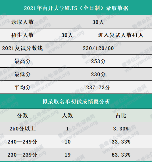 復試分數線為230/120/60,錄取最高分為253分,最低分為230分,平均分為分237.73分。