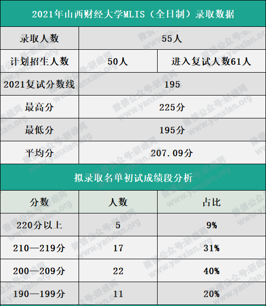山西財經大學信息學院2021年全日制圖書情報碩士研究生擬錄取55人。