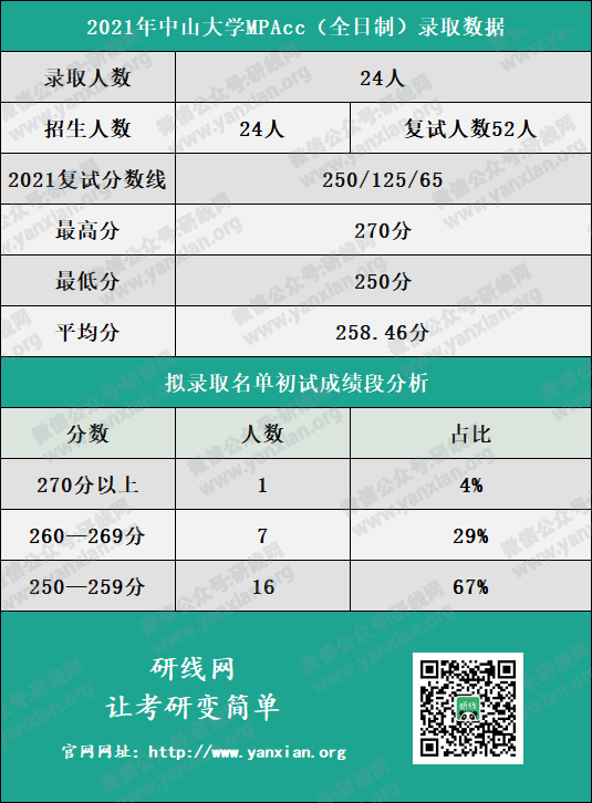 中山大學管理學院全日制會計碩士2021年招生計劃為24人,復試人數為52人,擬錄取人數為24人。