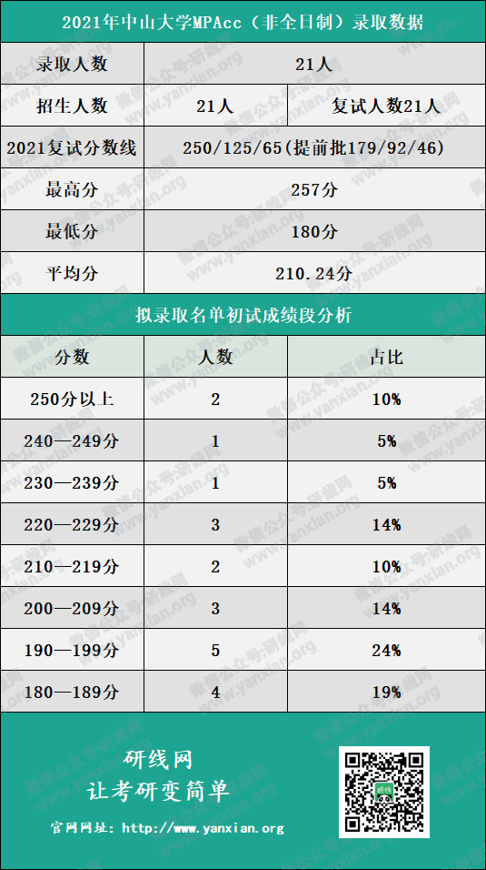 中山大學管理學院非全日制會計碩士2021年招生計劃為21人,復試人數為21人,擬錄取人數為21人。