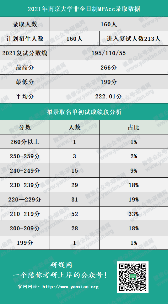 2021年南京大學非全日制MPAcc計劃招生人數160人,進入復試213人,擬錄取碩士研究生160人。