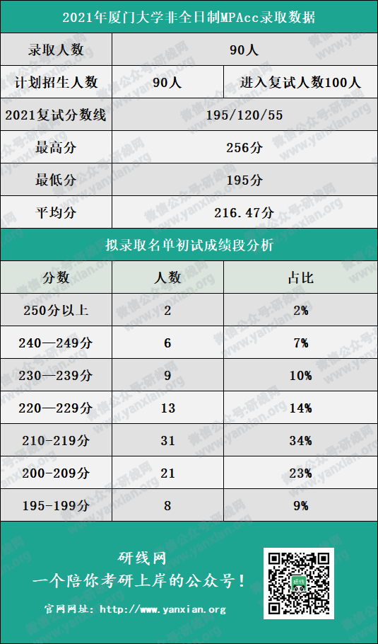2021年廈門大學全日制MPAcc計劃招生人數36人,進入復試44人,擬錄取碩士研究生36人。