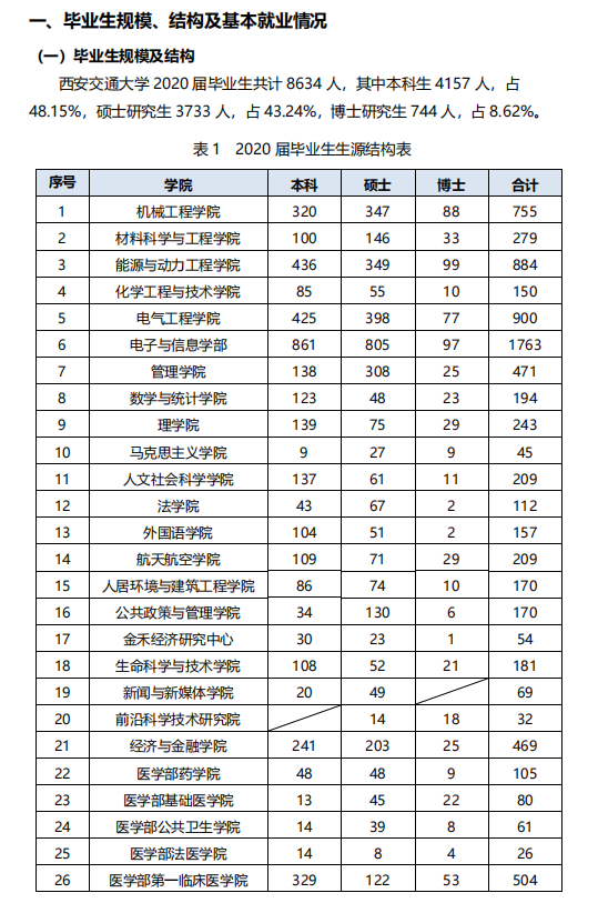 西安交通大學以截至2020年11月30日的畢業生就業情況為依據,編制了《西安交通大學2020年畢業生就業質量報告》