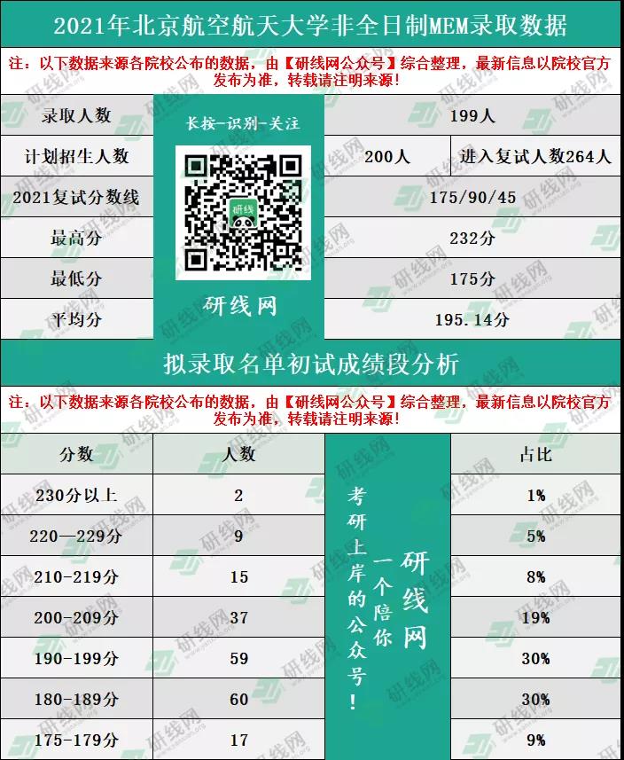 北京航空航天大學經濟管理學院2021年非全日制工程管理專業計劃招生人數為200人,復試人數為264人,擬錄取人數為199人。