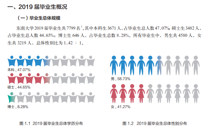 東南大學(xué)在《2019屆畢業(yè)生就業(yè)質(zhì)量報(bào)告》中全面反映2019屆畢業(yè)生的就業(yè)創(chuàng)業(yè)情況及對(duì)學(xué)校就業(yè)創(chuàng)業(yè)指導(dǎo)服務(wù)工作的滿意度,提供 2019 屆畢業(yè)生對(duì)人才培養(yǎng)情況的反饋。