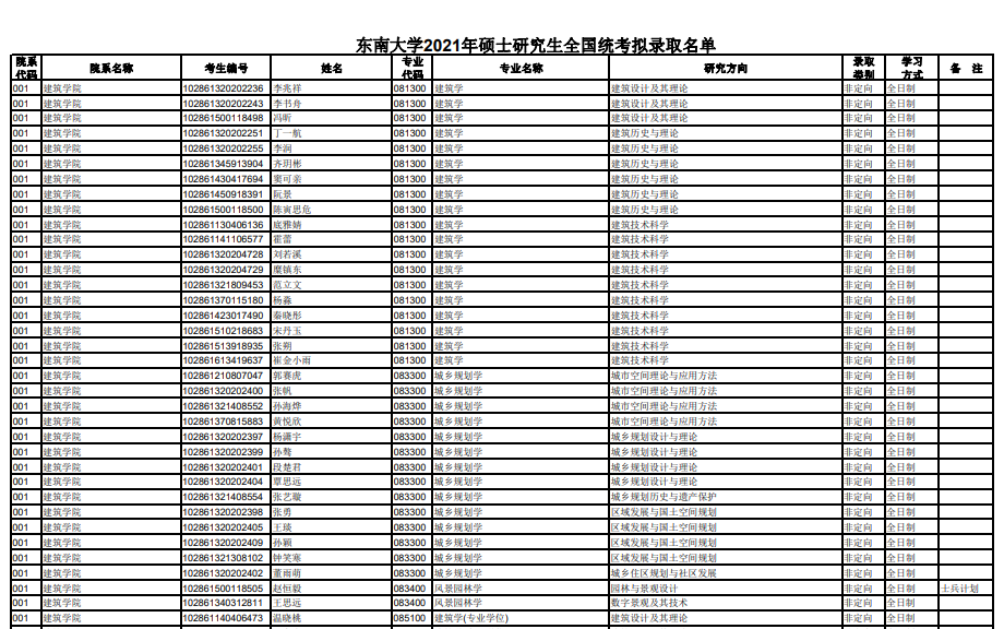 以下為東南大學(xué)2021年考研部分錄取名單: