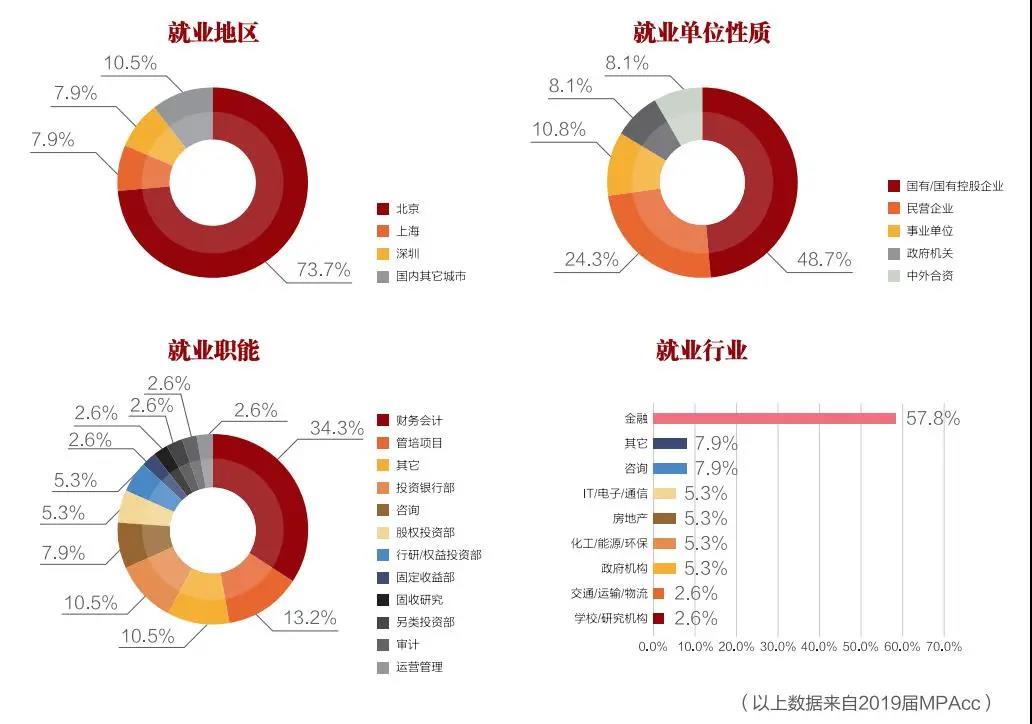 北京大學(xué)2019年會(huì)計(jì)專碩畢業(yè)生就業(yè)地區(qū)多為北京,從事行業(yè)多為金融,具體就業(yè)情況可見下圖表:
