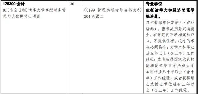 2021年清華大學經濟管理學院會計碩士(清華大學-新加坡管理大學會計專業碩士雙學位項目)計劃招生30人,清華大學深圳國際研究生院會計碩士(高級財務管理與大數據碩士項目)計劃招生30人。